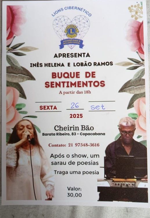 Em Copacabana, no Bar Cheirim Bão, novamente se apresenta a cantora e poetisa Inês Helena ao lado do músico Lobão Ramos com o show “Buque de […]