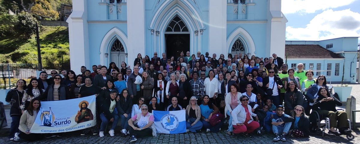 Outro grande acontecimento foi a realização do 31º Encontro Regional Leste 1 e a comemoração do aniversário dos 44 anos de fundação da Pastoral na Arquidiocese do Rio. Toda a atividade foi realizada na Paróquia Santo Antonio do Alto da Serra, em Petrópolis no dia 27 de setembro de 9h às 13h. Cerca de 110 surdos das cidades do Rio de Janeiro, Macaé, Campos de Goytacazes, Niterói, Nova Iguaçu e São João de Meriti estiveram presentes. Graças ao acolhimento generoso do Bispo Diocesano, Dom Joel Amado Portella, do responsável pelas Pastorais Sociais, diácono Permanente, Marcus e do Padre Alexsander de Brito Silva, tudo transcorreu conforme o planejamento da Comissão Organizadora do Rio. A programação iniciou-se às 9h, com a Oração e acolhida na Igreja, contando com a presença dos Diáconos Permanentes, Marco Carvalho e Eraldo Moreira, assessor da Pastoral da Pessoa com Deficiência (Pasped) do Regional Leste 1. Os participantes levaram um quilo de alimento não perecível em prol das pessoas mais vulneráveis da Paróquia. Em seguida, foi oferecido o café da manhã e prosseguindo com a palestra: “Surdos a serviço da Igreja: Unidade, Caridade e Justiça”, proferida pelo Diácono Eraldo. Após a reflexão, foi feita a Oração Mariana do Terço, om a participação dos Coordenadores Surdos das Comunidades. Para concluir a manhã de formação, o coordenador arquidiocesano, prof. Cesar Bacchim, destacou a virtude da humildade e do serviço aos marginalizados e vulneráveis com a paráfrase bíblica: “os últimos serão os primeiros e os primeiros serão os últimos”. (Mt 20,16). Foi feita também a dinâmica do barbante, reforçando a central ide de Cristo na Pastoral: “Eu sou o Caminho, a Verdade e a Vida”. (Jo 14,6).